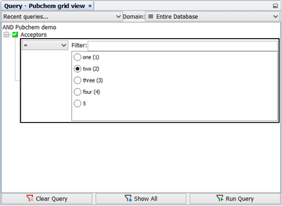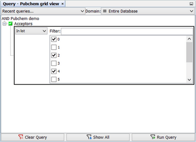 This is the easiest option. Pick list will access all the possible values in the field and make them available for selection. You need to load the available values from the database by clicking the "Load" button.