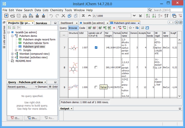In order to create derivations from existing data an individual or set of triggers can be used. In this example a single drug like filter column "Lipinski_5" is created and populated for any rows that are added to a JChem table. The IJC boolean type actually maps to a SMALLINT type in Derby. You also need to retain the "Required" value of FALSE.