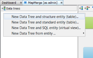 Alternatively, you could complete the same result with operations in the schema editor with the same result. Create a structures entity in the entities tab by right clicking New Structure entity (table)... . Then at the data tree level, promote it using New Data tree from entity ... Additionally, you can create the entity directly at the data tree level by selecting New Data Tree and structure entity (table)...