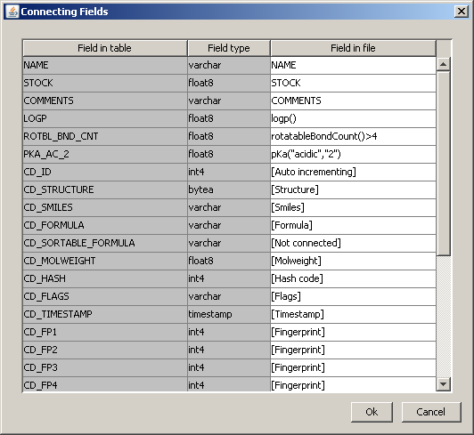 Compatibility notes : Tables created before JChem version 3.2 will be treated as "Any structures" to maintain previous behavior. The default type for new tables is "Molecules".