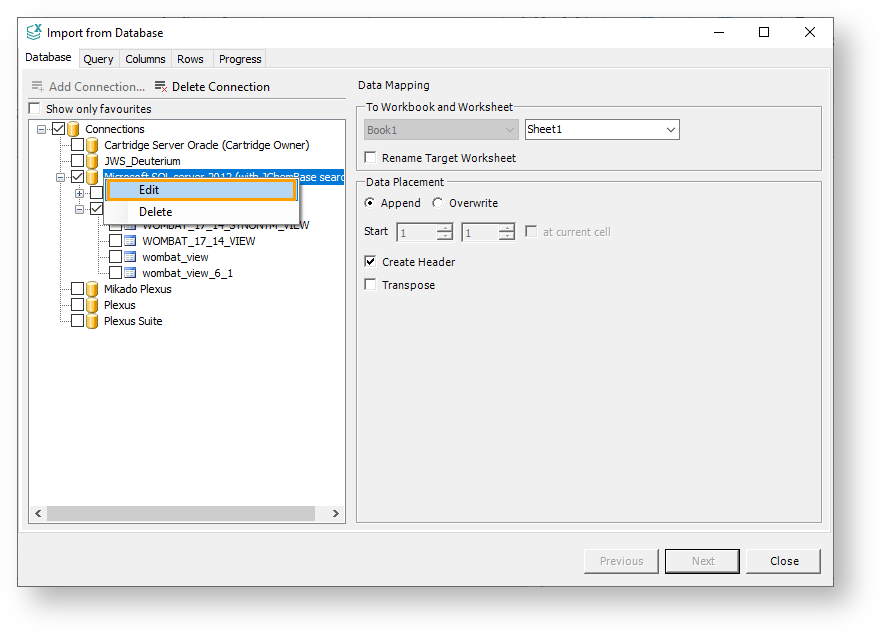Edit and Delete Connections in JChem for Excel¶