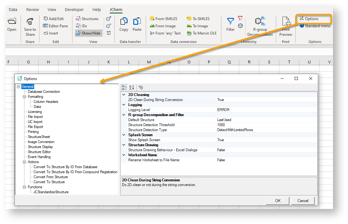 Options in JChem for Excel¶