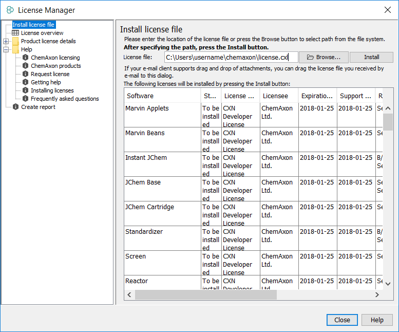 • (.)chemaxon/license.cxl (the license file name is fix)
