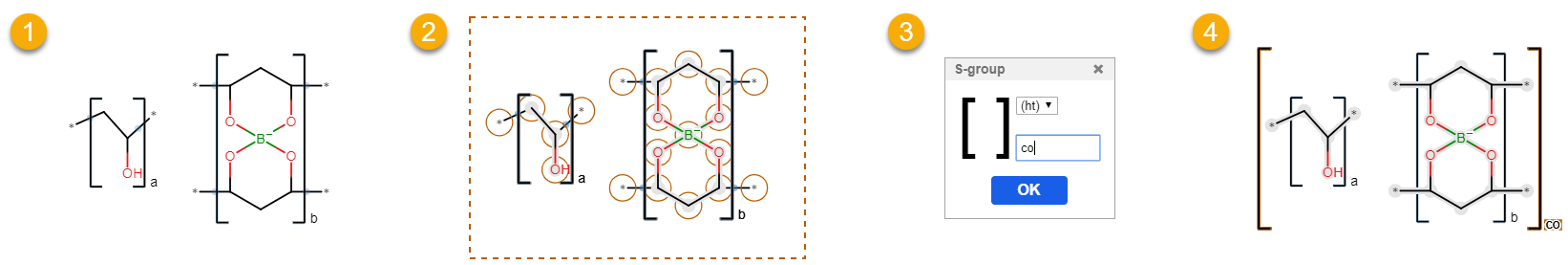 To create a repetition unit with the S-group tool, follow the steps below: