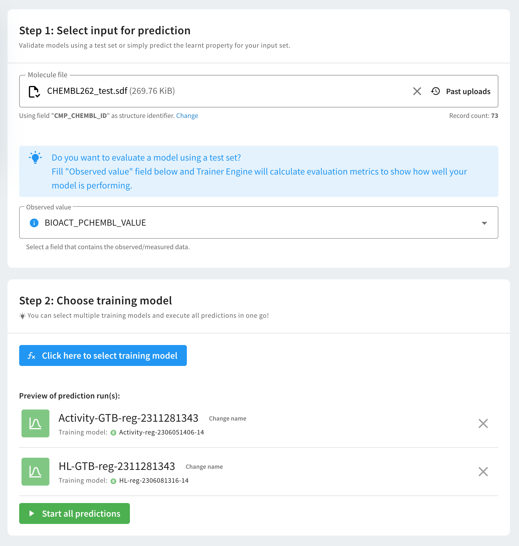 Once you set up everything, you can simply run the prediction by clicking on the Start prediction or Start all predictions button.