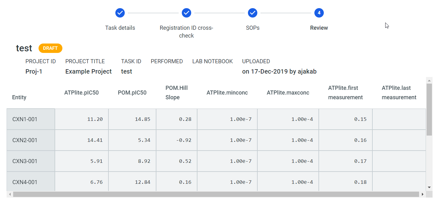 * > the first column (Column A) contains the entity description (the ID of the compound used in a registration system)