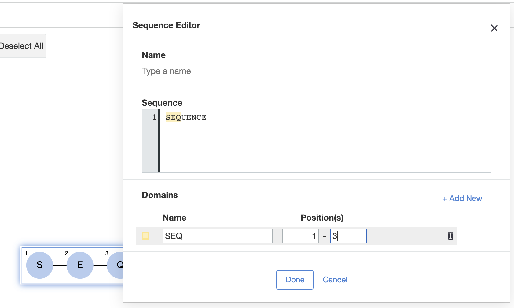 - Add more domains if required to the same sequence by repeating the steps above