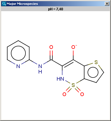 The Major Microspecies Plugin determines the major (de)protonated form of the molecule at a specified pH. The output of the plugin is the major microspecies displayed in 2D.