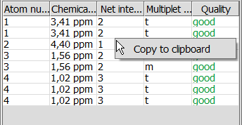 Fig. 15 Copy to clipboard action in the NMR Spectrum Viewer panel