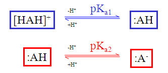 Fig. 4 Calculated pKa of deprotonated, neutral, and the protonated forms of ammonia according to the dynamic red & blue coloring schema