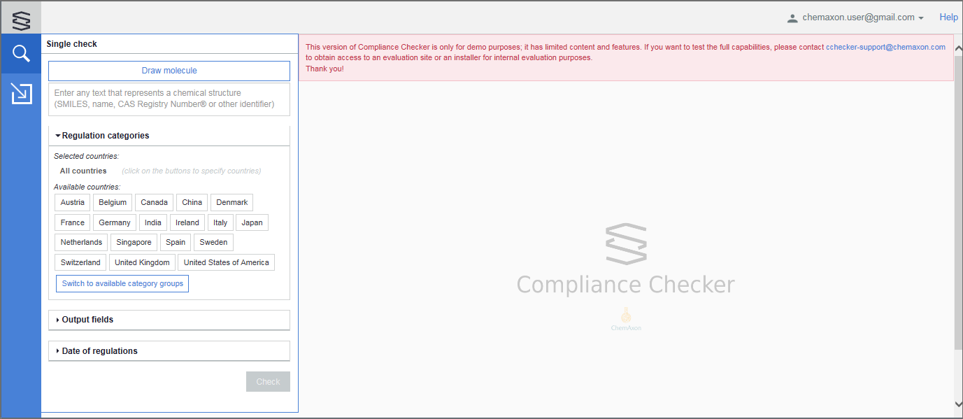 After logging in on thehttps://cchecker-demo.chemaxon.com/cc-web/#/login