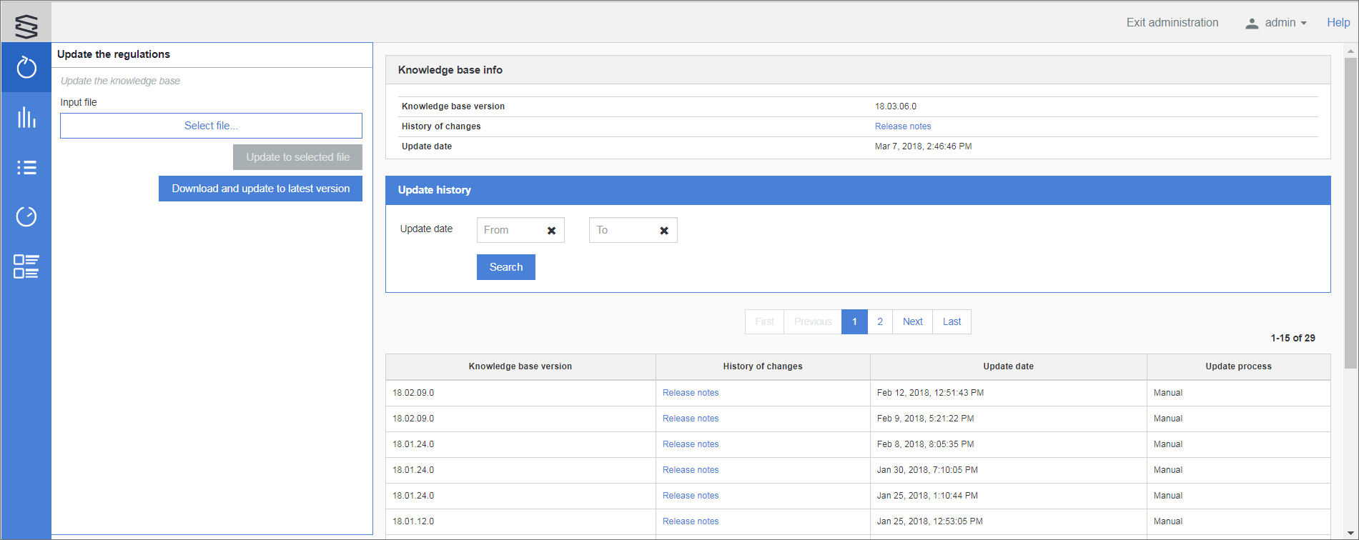 - Or the Knowledge Base can be updated automatically - if the update server was configured - by clicking on the Download and update to latest version button.