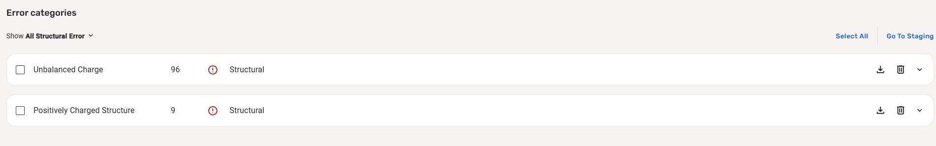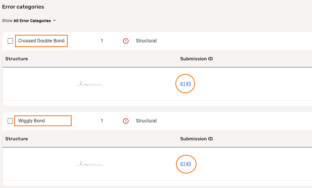 All submissions or just the selected one by error type can be downloaded in SDF format.