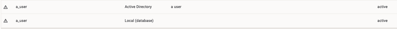 - Deactivate the local user of the conflicting pair. For this find a small deactivate icon on the right-hand side in the Actions column.