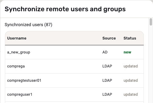 All of the remote users are listed here, their username, source (e.g LDAP) and the status (new/updated/deleted).