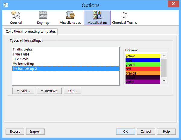 Templates are defined in your IJC preferences under the visualization section. To open the preferences use Tools->Options... (on Windows and Linux) or InstantJChem -> Preferences... (on Mac). Then select the visualization section.