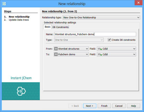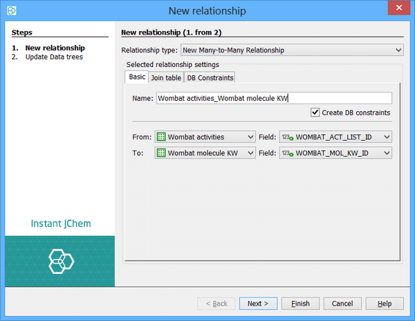 Enter a name for the Relationship. Typically use a descriptive name such as 'STRUCTURES2SAMPLES'.