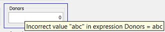 IJC validates the query as you type. An invalid query is displayed in red and an error message is displayed in the Query as Text window and as a tooltip for the widget.