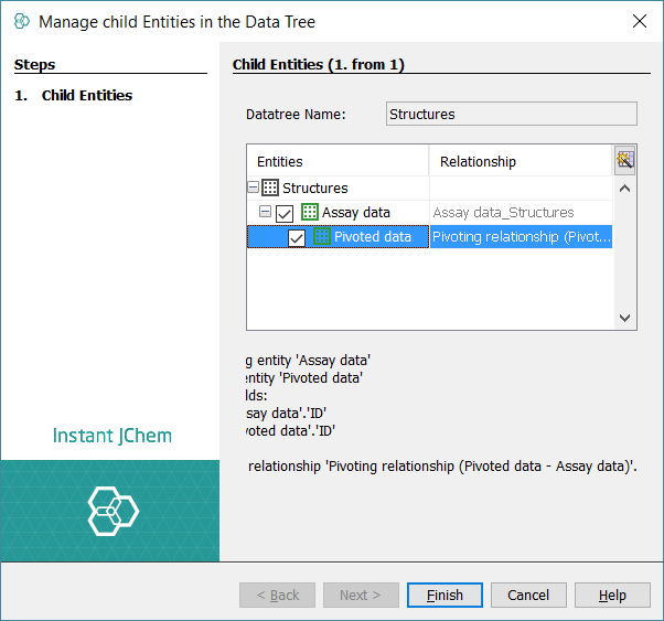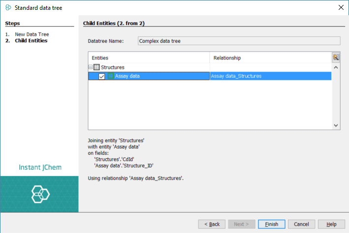 The last preparation step will include the creation of a data tree called Complex data tree containing both Structures and Assay data entities as described here in the documentation or in the relational form tutorial with the Structures entity being the parent (Fig. 3).