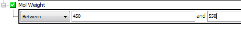 ) to open the Chemical Terms editor which will allow you to enter the expression or use one of the pre-defined favourites. This filter is applied to each result of the search and used as an additional filter for the search results. An example would be to retrieve only structures that have a logP of less that 5 by entering the expression