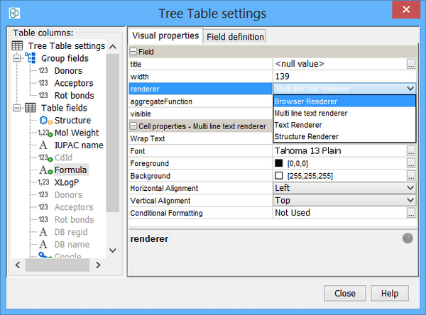 Next thing is to set up the correct renderer for the widget. Currently, only Table Widget, and Browser Widget support handling of the Text Field with RTF / HTML formatted text. For Table Widget (either in Grid View or Table Widget in Form View), this is done in 'Customize Widget settings' dialogue' and can be set up for each displayed Column/Field individually:
