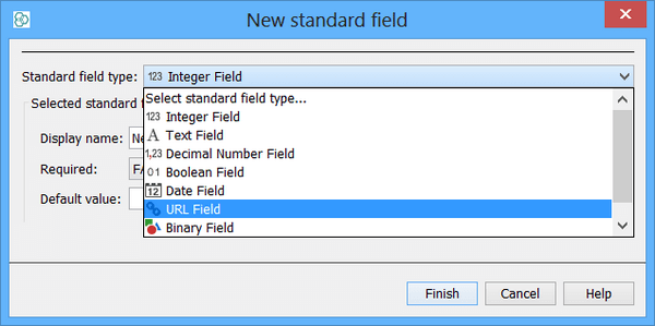 URL Field' from the list of field types. This lets you specify that you want a URL field rather than one of the standard field types.