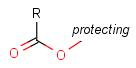 Protecting groups' definition file contains several definitions, each for protecting different functional groups. The protected functional group is defined by the neighborhood of the R-atom. When the R-atom has the same neighborhood as the "protecting" pseudo atom, then the group is replaced by the R-atom.