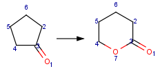 • If atom mapping is not unambiguous (e.g. the same atom map appears two or more times on the product side, or alternatively on the reactant side) then only one of the mapped atoms will be used to calculate the reacting center and it is arbitrary which one is used.