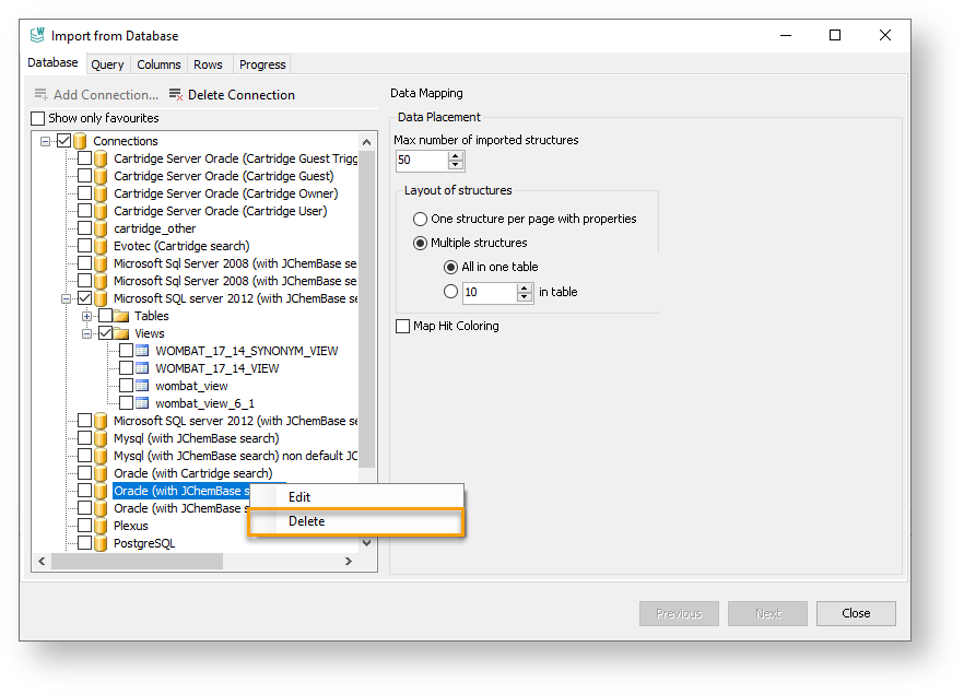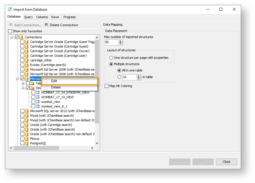 Edit and Delete Connections in JChem for Office¶