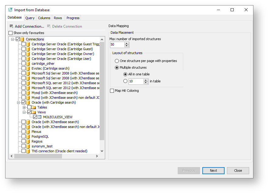 Import from Database in JChem for Office-Database Tab¶