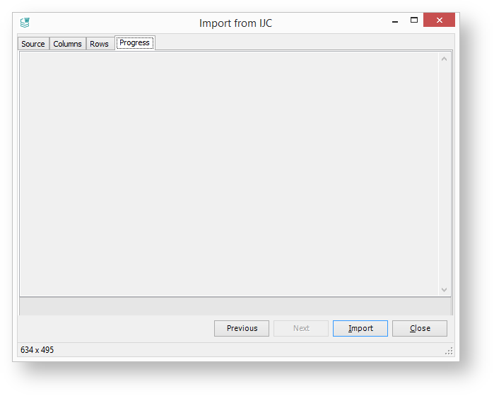 After clicking Import on the *Rows ** tab, the *Progress ** tab becomes active automatically, the import process starts. If any error occurs during the process, error messages will be displayed on this tab.