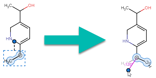 When a whole molecule is selected, the original center of rotation can be relocated by dragging.