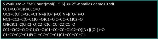 The Chemical Terms evaluator function can also be used for filtering. In the following example we filter out molecules that have less than 2 microspecies from a library: