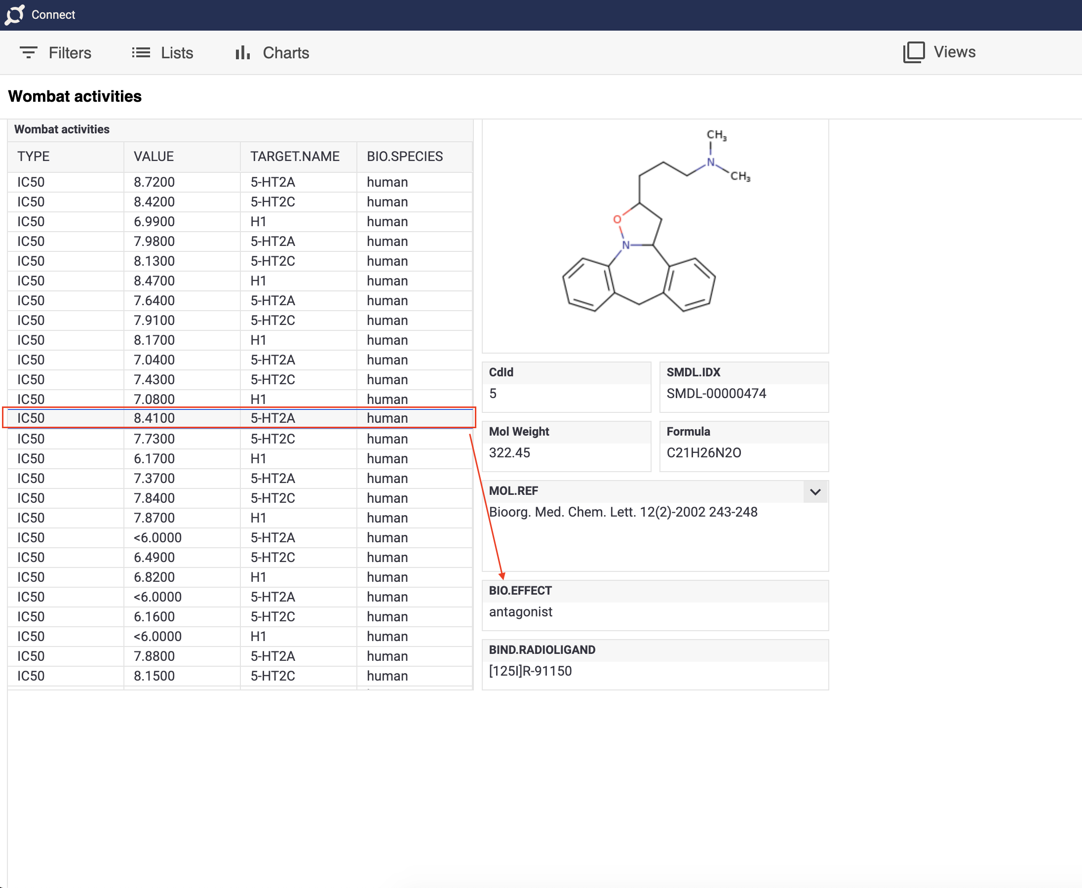 ) appears when the opened view is owned by you and allows you to open your view in Instant JChem (more details about handling Plexus Connect views in IJC can be found on this page). The star icon allows you to bookmark any opened view. The bookmarked view then appears in the Favorite Views section of Plexus Connect dashboard.