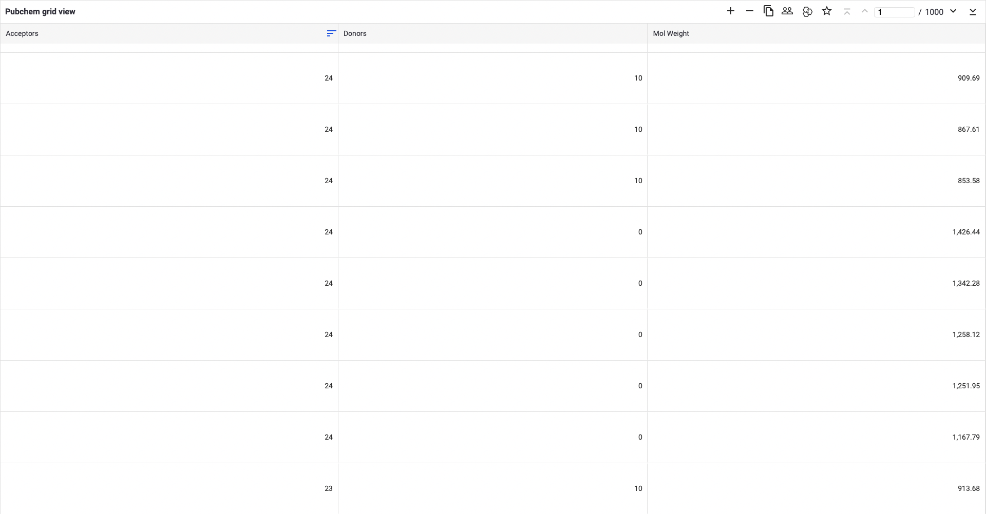 If the values in the Acceptors field are equal, order is decided by Donors values. If the values in Donors are equal as well, the order is decided by Mol Weight values.