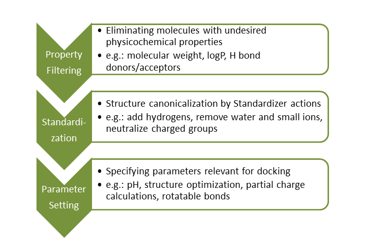 Structure-based virtual screening using molecular docking algorithms is a widely used tool in the drug discovery process. In order to complete this task successfully, ligand databases should be preprocessed prior to virtual screening.